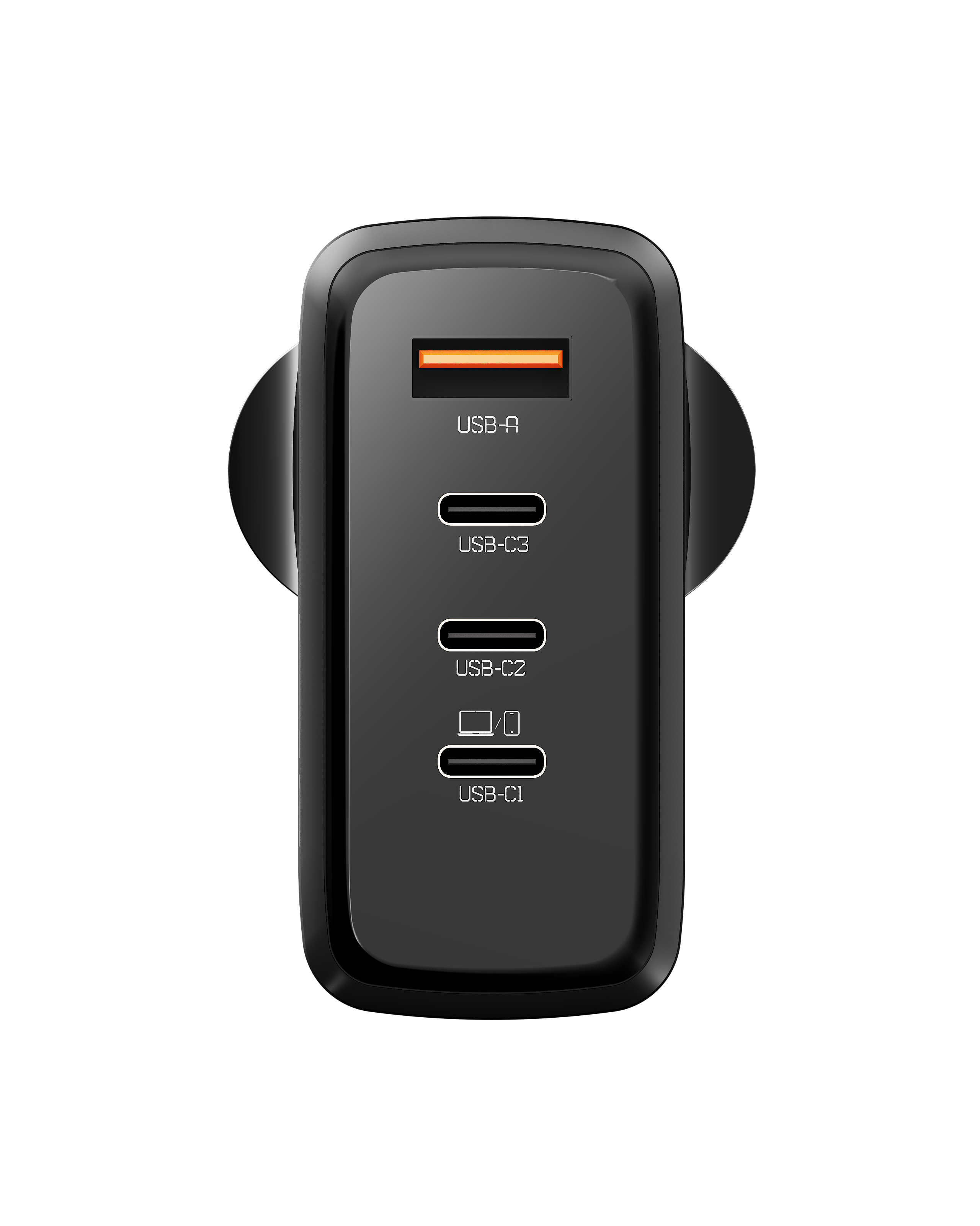 Output Ports | Quad Output Dynamic Power Distribution: Single Output: USB-C1: 100W (PD, PPS), USB-C2/C3: 30W (PD, PPS), USB-A: 30W (QC 3.0) Dual Output: (C1+C2/C3/A) 65W+30W, (C2+C3/A) 30W+30W, (C3+A) 15W Triple Output: (C1+C2+C3/A) 60W+18W+18W Quad Output: (C1+C2+(C3+A)) 60W+18W+15W |